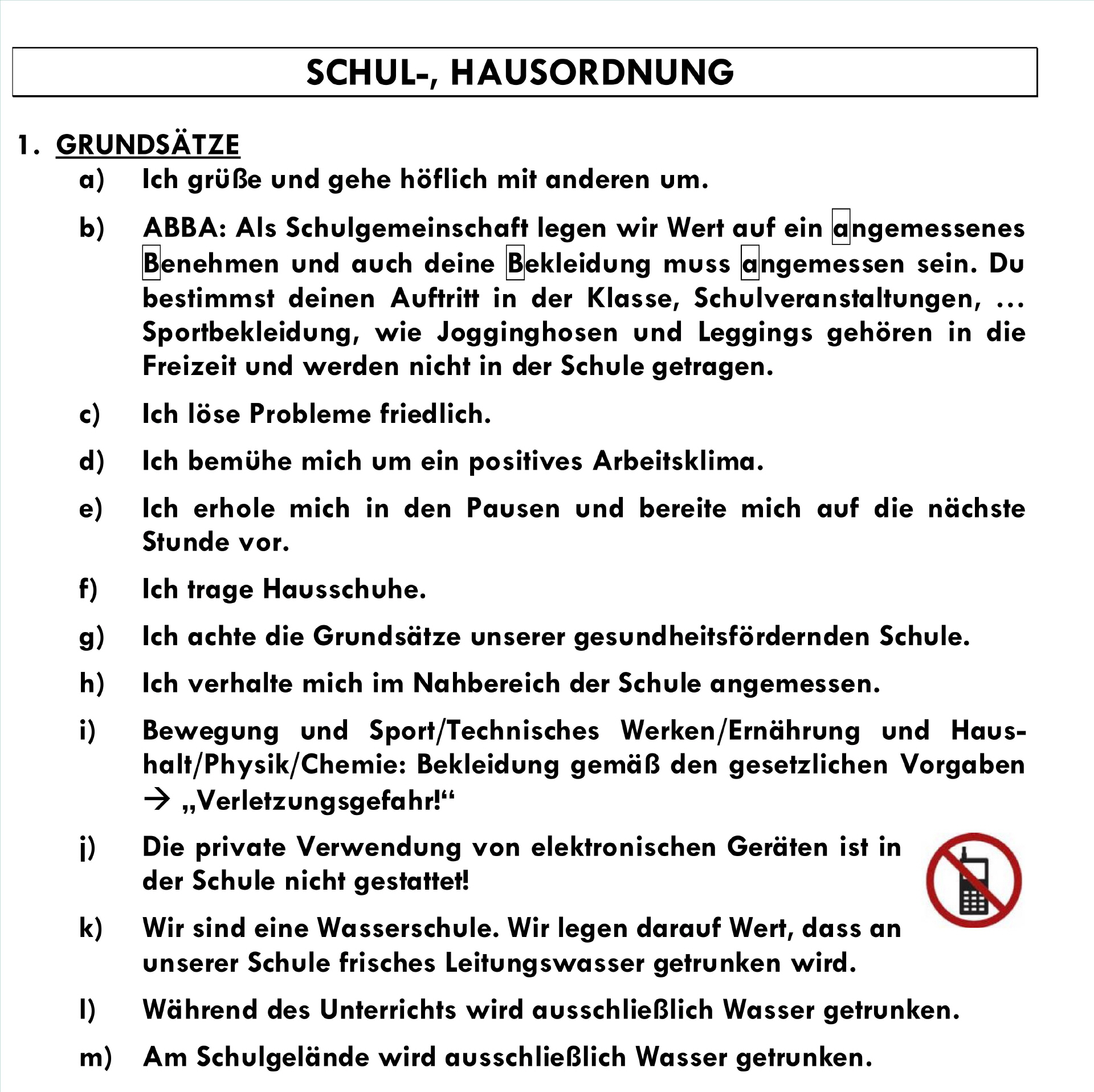 j) Die private Verwendung von elektronischen Geräten ist in der Schule nicht gestattet!