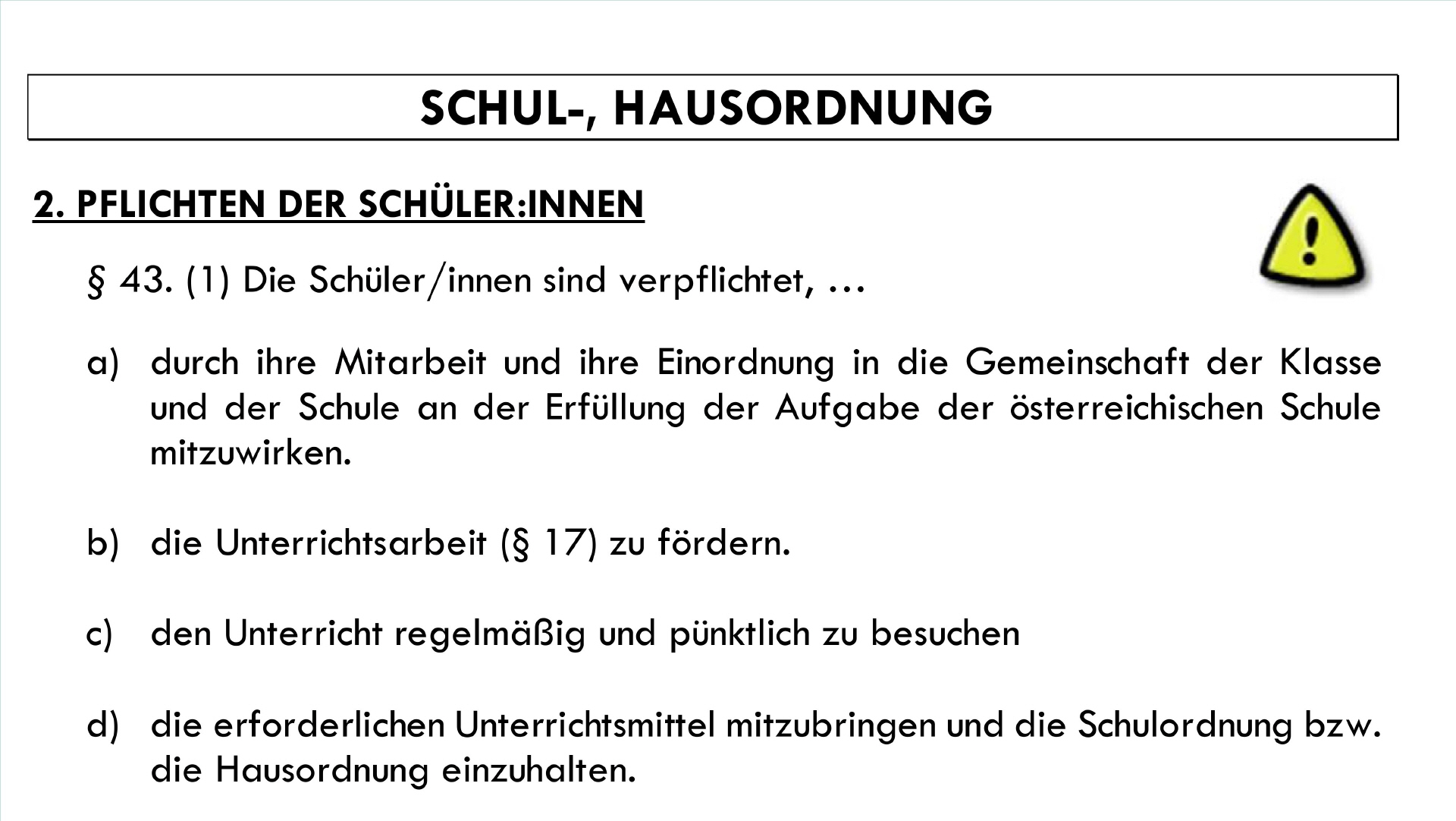 § 43. (1) Die Schüler/innen sind verpflichtet, …