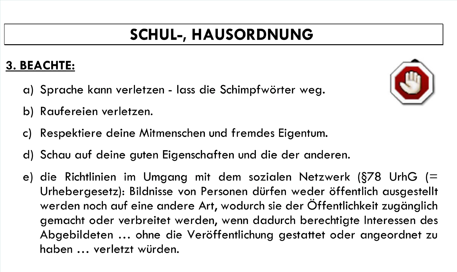 In den folgenden Absätzen wird unsere Schulordnung und Hausordnung beschrieben.